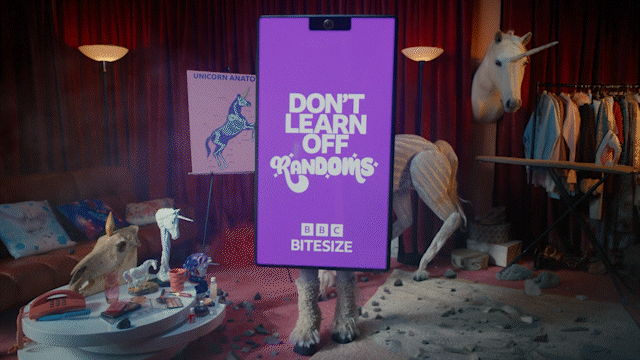 For the Bitesize campaign "Don't Learn Off Randoms" these subtly animated end frames were integrated in to the live action edit and aligned with the campaign's playful, tongue-in-cheek tone.